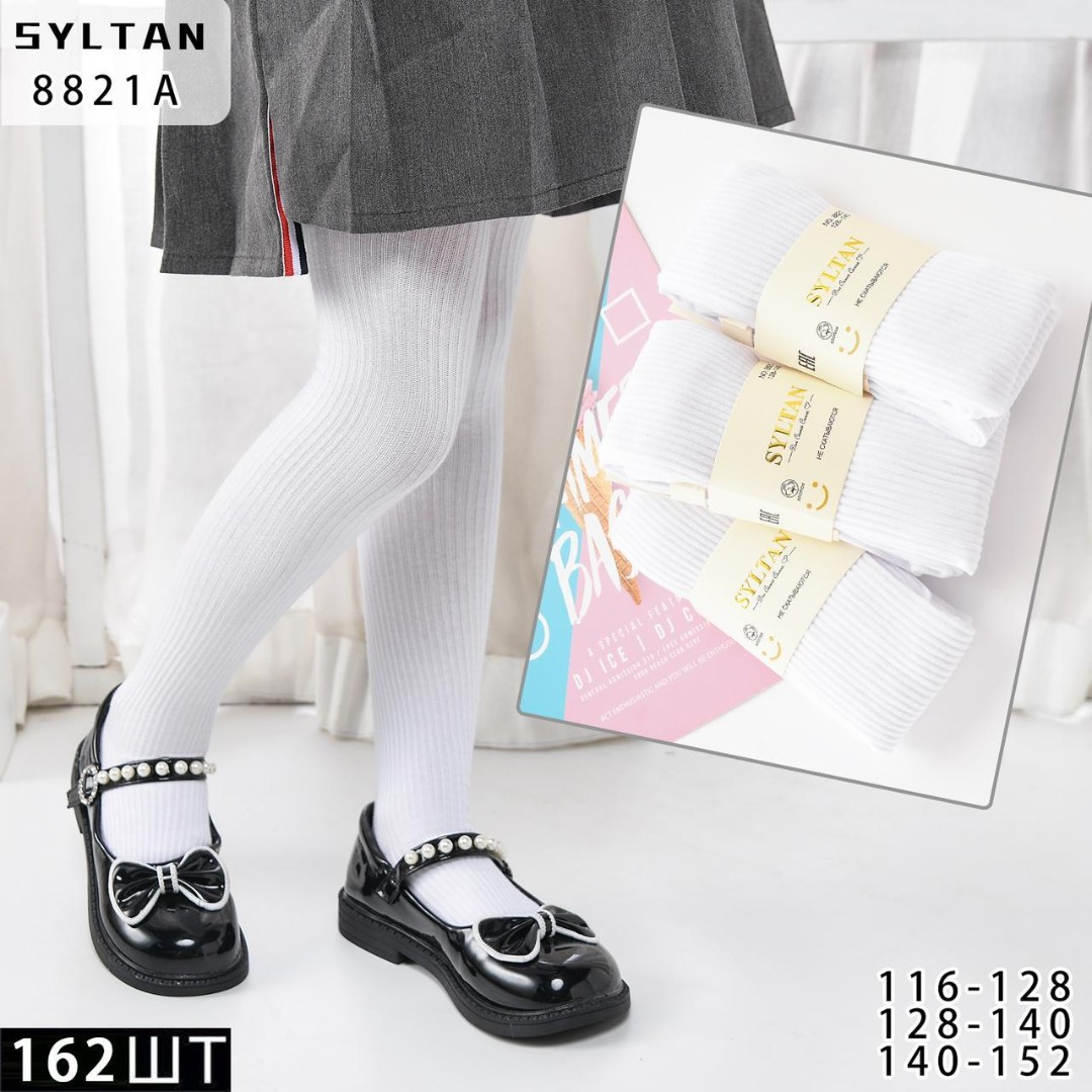 SYLTAN КОЛГОТКИ ДЕТСКИЕ В РУБЧИК ХЛОПОК БЕЛЫЕ БЕЗ ПРИНТА 8821 в Армавире