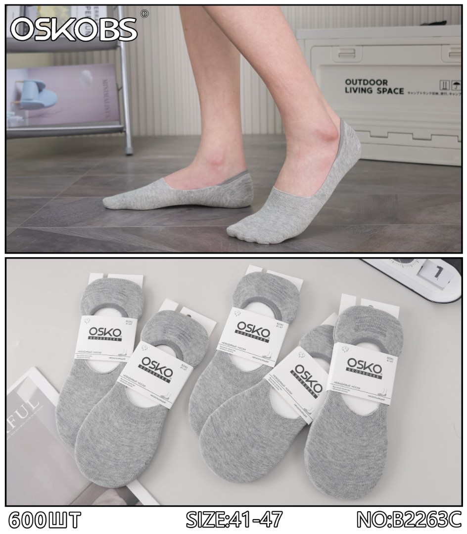 СЛЕДКИ МУЖСКИЕ СИЛИКОНОВЫЙ ЗАДНИК ХЛОПОК СВЕТЛО-СЕРЫЕ OSKOBS B2263 в Армавире