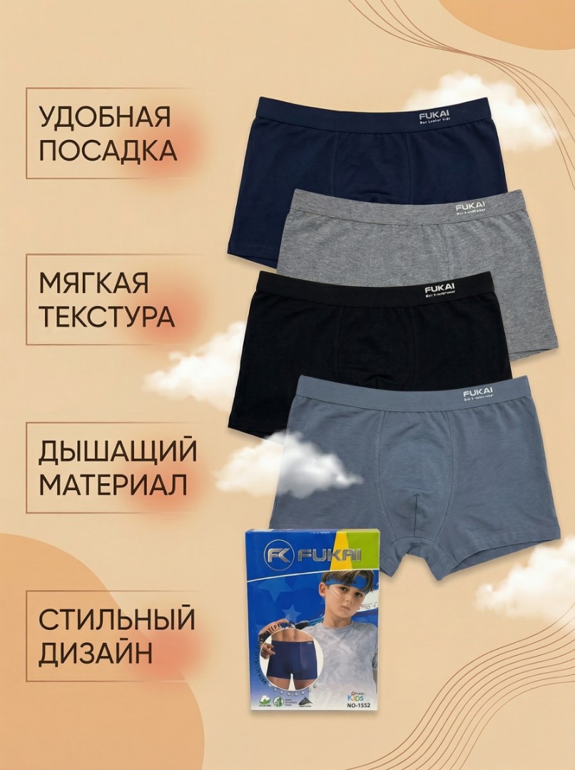 ТРУСЫ ДЕТСКИЕ/ПОДРОСТКОВЫЕ БОКСЕРЫ НА ВОЗРАСТ 6-8,8-10,10,12-12-14 ЛЕТ, ХЛОПОК АССОРТИ FUKAI ОТЛИЧНОГО КАЧЕСТВА 1322 в Армавире